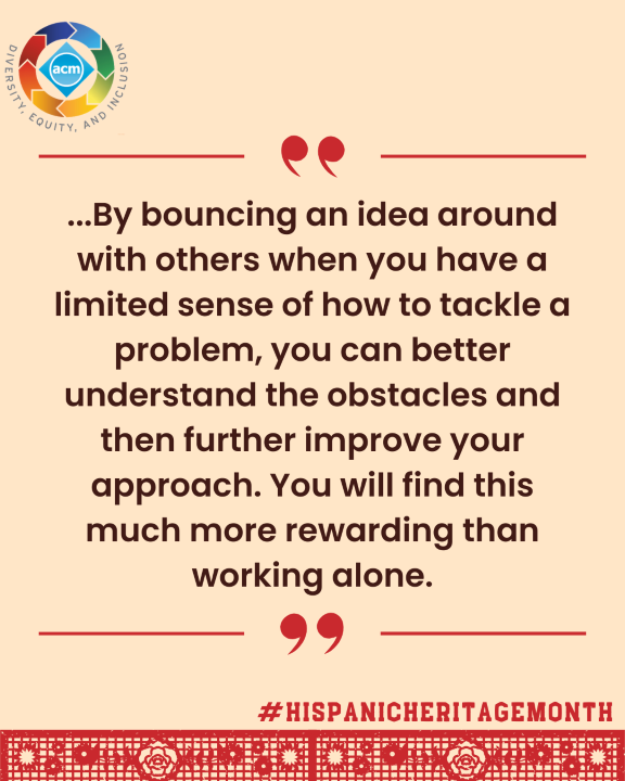 Through September 15 to October 15, ACM is celebrating Hispanic Heritage Month (Iberoamerican Heritage Month) by honoring Latin and Hispanic individuals who have made considerable contributions to the ACM community. During this time, ACM will be highlighting several prominent Latin and Hispanic computing professionals for their accomplishments that have left a tremendous impact on the computing field. Follow ACM social media (X, Instagram, Facebook) and #HispanicHeritageMonth to keep track of our posts related to this campaign.